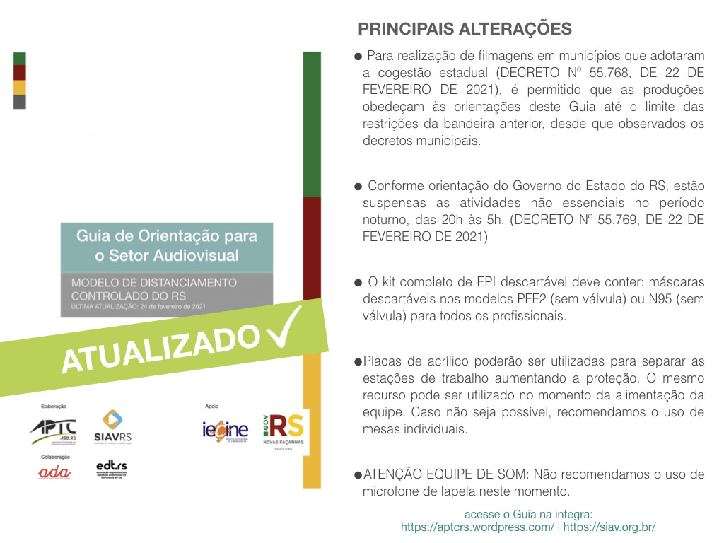 Nesta quarta-feira (24 de fevereiro) a terceira versão do Guia de Orientação do Setor Audiovisual foi atualizada com o apoio oficial do governo do estado.